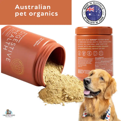 "Australian pet organics Digestive Health Certified Organic Supplements for Dogs is a powerful Digestive Health supplement to support your dog's gut health.