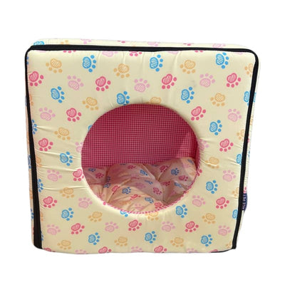 ACE PET Colourful Paws Yellow Non-Fur Cosy Dog Bed is a two-style bed that can be used as a hideout with two entries for ventilation while sleeping cosily in it! It can be converted to a premium sofa bed in seconds or used as a car seat.