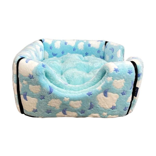 ACE PET Lovely Sky Blue Furry Cosy Dog Bed is a two-style bed that can be used as a hideout with two entries for ventilation while sleeping cosily in it! It can be converted to a premium sofa bed in seconds or used as a car seat.