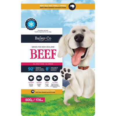 Bailey+Co New Zealand Grass-Fed Beef Freeze-Dried Raw Dog Food is complete raw food, healthy happiness for your dog. A go-to for pet lovers that want the best for their pals. Freeze-dried and fuss-free.