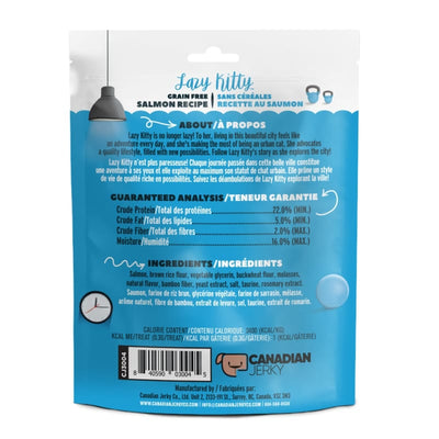 Canadian Jerky Lazy Kitty Grain-free Salmon Recipe Air-dried Cat Treats is highly palatable, air-dried goodness that we're sure all kitties will love!