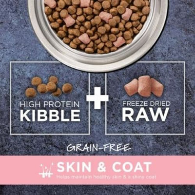 Chicken, Chicken Meal, Peas, Tapioca, Menhaden Fish Meal, Dried Tomato Pomace, Suncured Alfalfa Meal, Chicken Fat (preserved with Mixed Tocopherols and Citric Acid), Turkey Meal, Freeze Dried Chicken, Montmorillonite Clay, Natural Flavor, Freeze Dried Chicken Liver, Pumpkinseeds, Salt, Freeze Dried Chicken Heart, Vitamins (Vitamin E Supplement, Niacin Supplement, L-Ascorbyl-2-Polyphosphate, Thiamine Mononitrate, d-Calcium Pantothenate, Vitamin A Supplement, Riboflavin Supplement, Pyridoxine Hydrochloride, Vitamin B12 Supplement, Folic Acid, Vitamin D3 Supplement, Biotin), Carrots, Apples, Cranberries, Minerals (Zinc Proteinate, Iron Proteinate, Copper Proteinate, Manganese Proteinate, Sodium Selenite, Ethylenediamine Dihydriodide), Pumpkin, Choline Chloride, L-Carnitine, Potassium Chloride, Dried Kelp, Salmon Oil, Blueberries, Dried Bacillus coagulans Fermentation Product, Rosemary Extract.Â