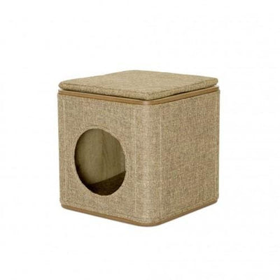 Lulu's World Lu-Casa Cosmo Oak Cat Tree House includes a cube or cave for your cat to sleep in after all the fun and exploration.