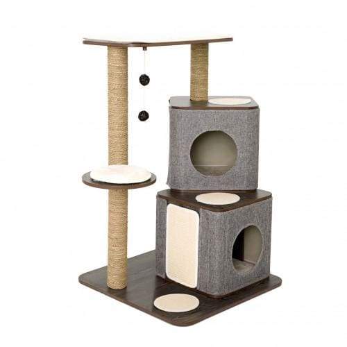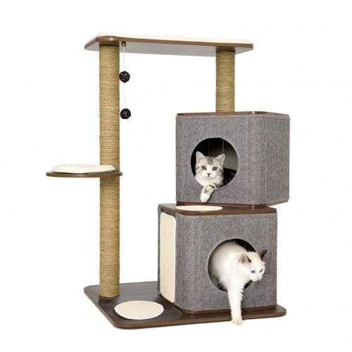 Lulu's World Lu-Cubox Twin Base Oak Cat Tree House includes two cube or cave for your cat to sleep in after all the fun and exploration.