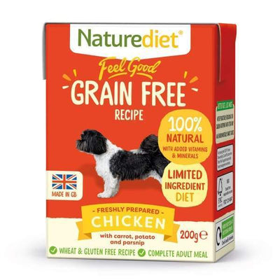 It is a grain-free and gluten-free complete & balanced dog food, with vitamins & minerals added into Naturediet Feel Good Grain-Free Chicken Wet Dog Food 200g to ensure the whole food is nutritionally balanced.