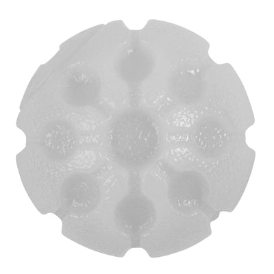 The same size as a tennis ball and invincible to water or slobber, this tough little ball floats, and is great for the dog who loves to swim. The unique grooved design on the surface creates a bite friendly exterior that is easy to pick up for small and large dogs alike, making it the perfect fetch toy for your four legged friends of all sizes.