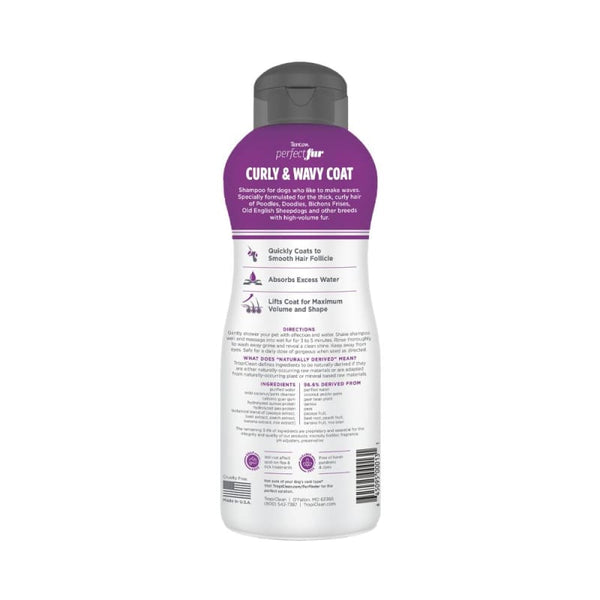 Tropiclean PerfectFur Curly & Wavy Dog Shampoo is specially formulated for the thick, curly hair of Poodles, Doodles, Bichons Frises, Old English Sheepdogs and other breeds with high-volume fur.