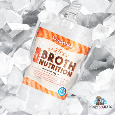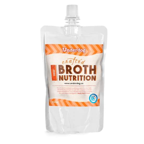 Underdog Beef Bone Broth can be used as a topper to re-hydrate dry dog food such as freeze-dried raw or even kibbles making it more delicious, nutritious and regain the moisture that is not in the dry dog food.