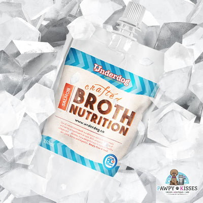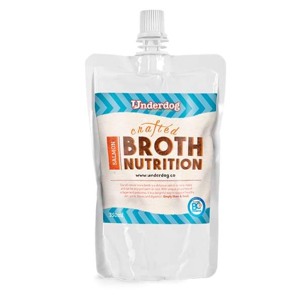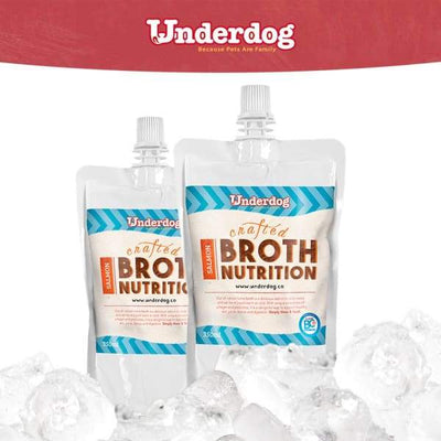 Underdog Salmon Bone Broth can be used as a topper to re-hydrate dry dog food such as freeze-dried raw or even kibbles making it more delicious, nutritious and regain the moisture that is not in the dry dog food.