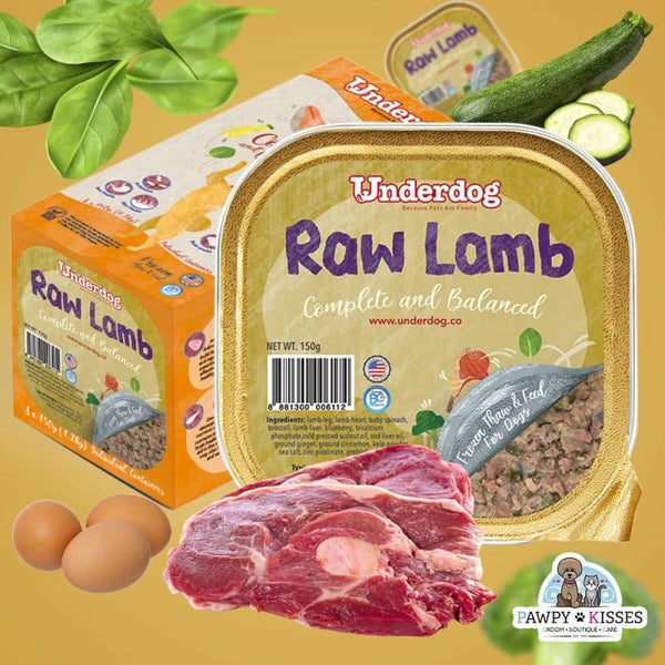 Underdog Fresh Raw Lamb Frozen Dog Food is a complete & balanced meal that is carefully formulated with a blend of 80% ~ 90% meat, vegetables, fruit, herbs, and supplements. The Ingredients used is based on its nutritional merits to create a whole food.