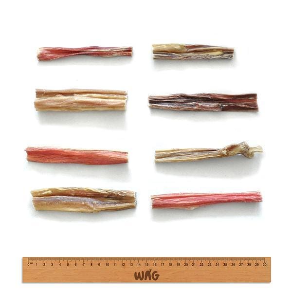 WAG Bully Bites Air Dried Dog Treats is made with 100% pure meat ingredient and gently air-dried to preserve the natural smell and taste that the majority of the dogs can't resist.